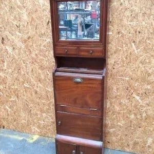 Et særligt bemærkelsesværdigt stykke fra Conservatorium van Amsterdam. Denne kontrabasskiste fra 1930’erne til 1940’erne har været igennem meget, og det afspejler sig også i dens karakter og mærker. Amsterdam School-indflydelse ses tydeligt. Kan med lidt besvær laves til et antikt (drikke)skab eller bruges som dekoration i f.eks. horeca