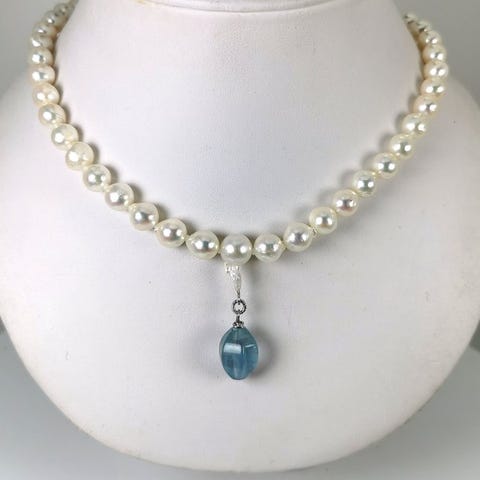 Den 48 cm lange kæde ligger flot under kravebenet og er individuelt håndbundet mellem hver perle for sikkerhed og komfort.