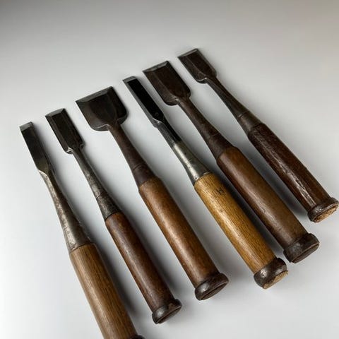 Chisel 7-Piece (千代光, 市, 光, 栄一, 天祐, Vintage Japanese Carpentry / Woodcarving Tools)