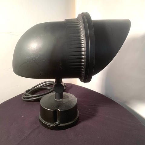 ADB industrielt designerprojektor i aluminium og stål, oprindelse Belgien, i fremragende stand, i drift, mål 40 × 40 × 60 cm, hængehøjde til loftet 60 cm. Klik på den blå "gå til varen" knap, for at købe eller byde på denne vare. Den samlede pris vil blive vist inden du afgiver dit bud.