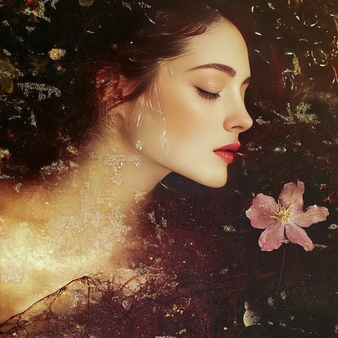Dette værk blander modefotografi skabt af kunstneren med fantasyelementer genereret gennem AI.