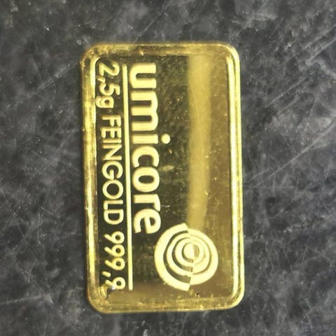 Guldbarre 2,5 gram UMICORE/Blister med certifikat