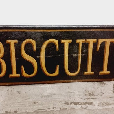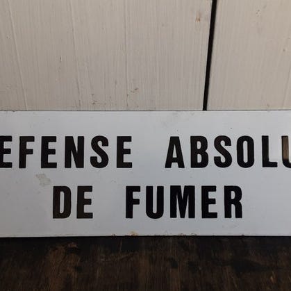 Skiltet er udført i emaljeret metal og har et smukt autentisk udtryk med tydelige brugsspor, såsom små rustpletter og slid omkring monteringspunkterne, hvilket bidrager til det vintage præg.