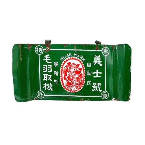 Original japansk emaille reklameskilt til sake, lavet af stål med emalje, 45 × 45 cm, fra 1950–1960, i god brugt stand med små tegn på ælde og pletter. Klik på den blå "gå til varen" knap, for at købe eller byde på denne vare. Den samlede pris vil blive vist inden du afgiver dit bud.