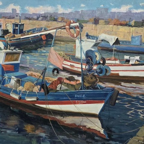 Pictura Galeria præsenterer dette vidunderlige kunstværk af Joan Canós, som fremstiller sereniteten i en havn, hvor fartøjerne hviler, og vandet reflekterer roen i det marine liv. Maleriet skiller sig ud ved sin fremragende teknik og den store billedlige kvalitet, det formidler.