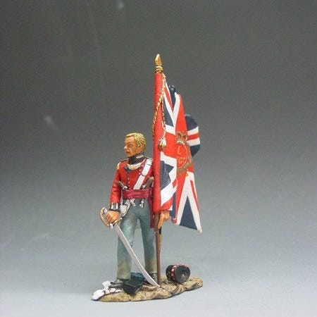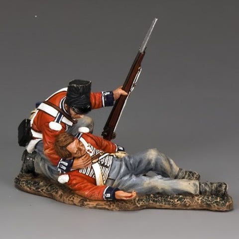An ‘Old Guard’ sergeant attempts to pull his seriously wounded officer to safety. These 2 x figures were inspired by a painting showing the same action.