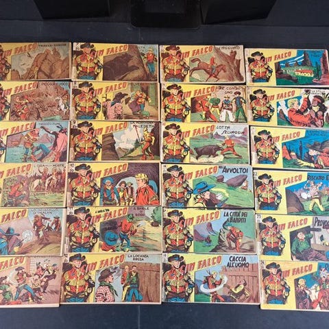 Araldo, Gli Albi del Cow-Boy, første serie, nr. 1, i første udgave hæftet, December 1963. Baseret på hæftet udgave, cm 21x16. Næsten som ny. Let trykmærke i øverste venstre hjørne, nogle gulnede områder ved højre kant. Ellers fremragende stand.