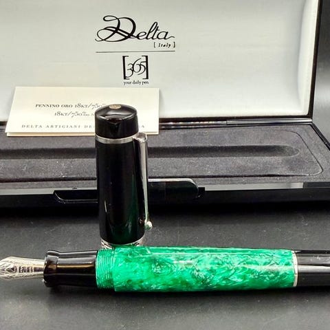Pelikan Ibis 130 fyldepen i ædel resin med massiv 14 kt gul nib, fremstillet i Tyskland i 1950erne, længde 12 cm, diameter 1 cm, i fremragende stand, sjældent brugt og fuldt funktionsdygtig, inklusive Pelikan-æske. Klik på den blå "gå til varen" knap, for at købe eller byde på denne vare. Den samlede pris vil blive vist inden du afgiver dit bud.