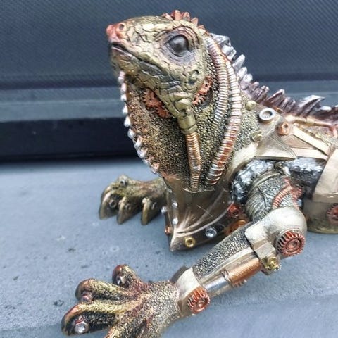 Stående giraffe i steampunk-stil af polyresin, oprindelse Europa, i fremragende stand, ubrugt signatur, 53 cm høj, 30 cm bred, 14 cm dyb. Klik på den blå "gå til varen" knap, for at købe eller byde på denne vare. Den samlede pris vil blive vist inden du afgiver dit bud.
