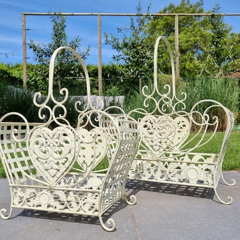 Smedjern blomster-/planterkasse i god stand, dateret fra 2020 eller senere, højde 98 cm, bredde 30 cm, dybde 30 cm, beige og hvid finish, oprindelse Belgien. Klik på den blå "gå til varen" knap, for at købe eller byde på denne vare. Den samlede pris vil blive vist inden du afgiver dit bud.