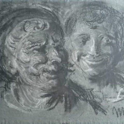 Værket ledsages af et ægte foto af mesteren