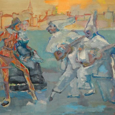 Enestående værk, unikt og originalt af Mino Maccari (1898-1989), olie på lærred.