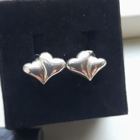 Smukke og feminine ørestikker med motiv af hjerter udført i mat poleret Sterlingsølv prydet med smukke cubic zirkoner.