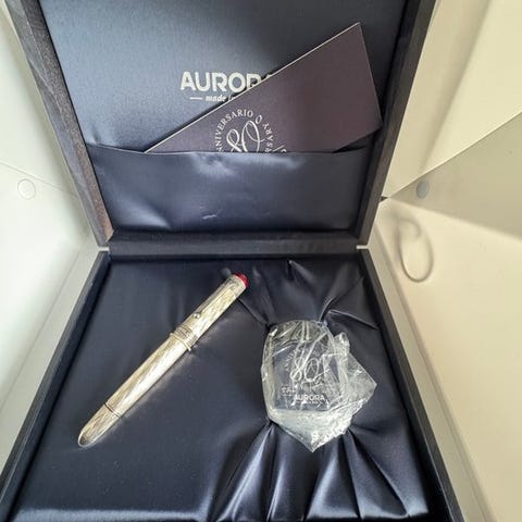 Pilot Sterling Silver fountain pen Winter Grove, fremstillet i Japan af Pilot, midt-20. århundrede, i guld og sterling sølv, 136 mm lang, Ø 15 mm, 30,8 g, nib 18k, i god brugt stand. Klik på den blå "gå til varen" knap, for at købe eller byde på denne vare. Den samlede pris vil blive vist inden du afgiver dit bud.