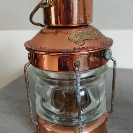 Ship's lamp, Navigation lamp, Decorative ship's lamp - Kobber, Messing, Glas