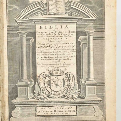Bibelens hellige skrift (Bibbia Sacra), Napoli, oversat fra fransk af P. De Carrieres, 1. udgave udgivet af Giovanni Muccis, Napoli, 1777, italiensk, vellumbind, 500 sider, god stand. Klik på den blå "gå til varen" knap, for at købe eller byde på denne vare. Den samlede pris vil blive vist inden du afgiver dit bud.