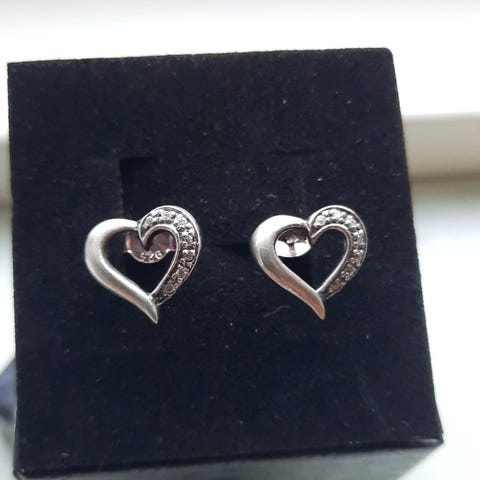 Smukke og feminine ørestikker med motiv af sammensatte hjerter udført i Sterlingsølv.