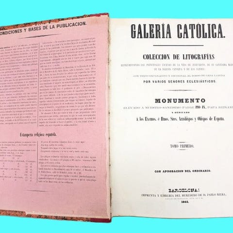 Album Pittoresque l'Italie: Vues, Monuments, Types af Rouargue frères, første illustrerede udgave fra 1860, udgivet af A. Laplace, indbinding i rødt demi-kulur med titellapper i marokænrødt, 42 plader, hvoraf 7 farvebrydninger, trykt på tykt papir med mellemblade, In-Folio-format (39 × 28 cm). Klik på den blå "gå til varen" knap, for at købe eller byde på denne vare. Den samlede pris vil blive vist inden du afgiver dit bud.