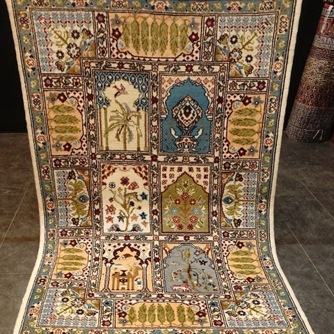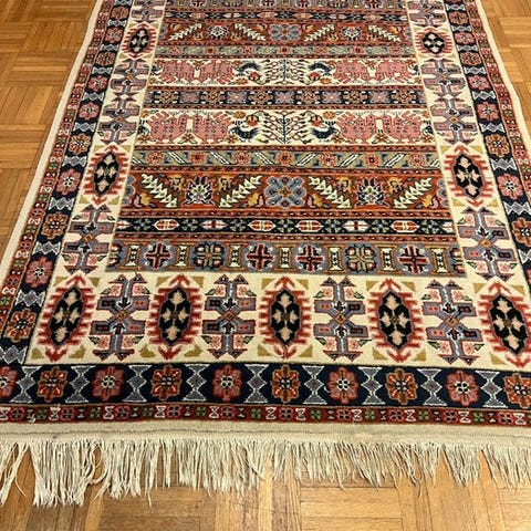 Venligst betragt tæppet med tålmodighed og opmærksomhed. Hvert håndlavet tæppe er unikt i dets mønster, skønhed og farveharmoni og derfor et kunstværk i sig selv.