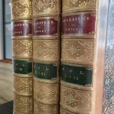 Det komplette sæt af værkerne af den vigtige forfatter Charles Lamb i en 12-binds begrænset udgave (nummer 110 af 200 sæt udstedt til England). Inkluderer: Vol. I: The Essays of Elia; Vol. II: The Last Essays of Elia; Vol. III: Critical Essays; Vol. IV: Essays and Sketches; Vol. V: Poems and Plays; Vol. VI: Tales from Shakespeare; Vol. VII: Stories for Children; Vol. VIII: Poetry for Children; Vol. IX: Specimens of English Dramatic Poets, Vol. I; Vol. X: Specimens of English Dramatic Poets, Vol. II; Vol. XI: Letters, Vol. I; Vol. XII: Letters, Vol. II. Tilfældige pletter på siderne; ex libris