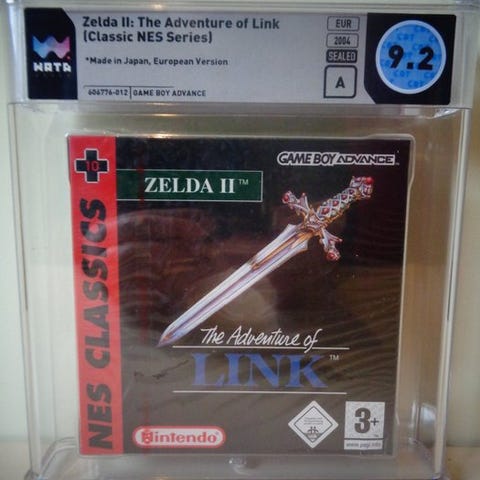 Nintendo Game Boy Advance-titel „The Legend of Zelda“ Red Stripe Sealed, WATA-bedømmelse A+, år 2004, tilstand Ny, i originalt forseglet emballage. Klik på den blå "gå til varen" knap, for at købe eller byde på denne vare. Den samlede pris vil blive vist inden du afgiver dit bud.