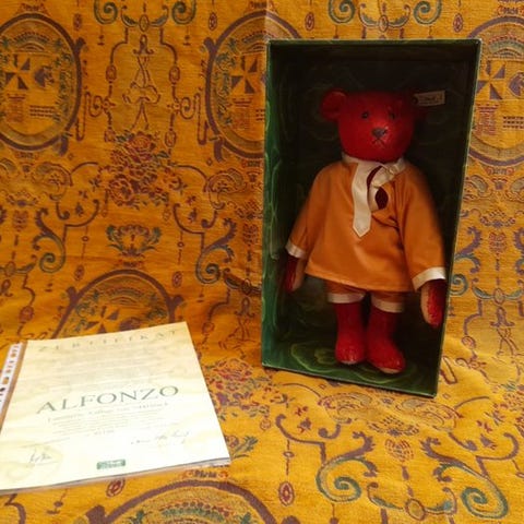 Tilstand: god til meget god. Har Steiff-knap og Steiff-knap. Tryk-knappen virker. Har papirbrystmærkat og papirlabel.