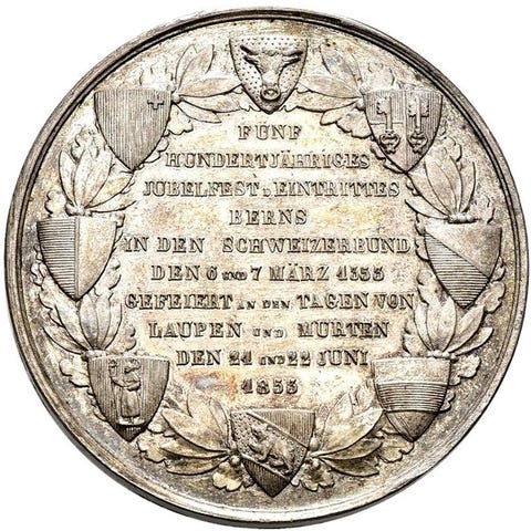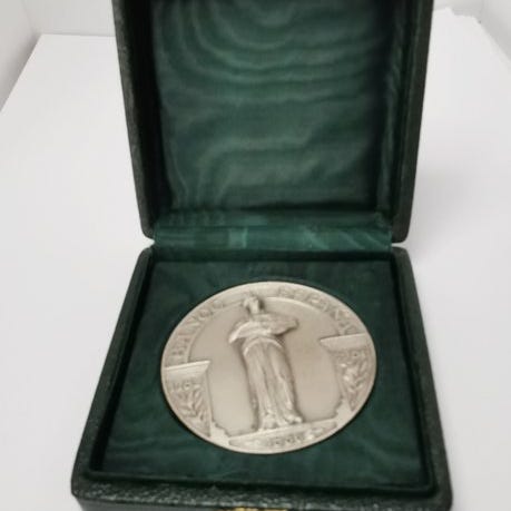 Denne sølvmedalje blev uddelt til fremtrædende deltagere ved Verdensudstillingen i 1855 i Paris, der fejrede fyrre år fred i Europa efter Slaget ved Waterloo. På forsiden af medaljen ses et højrelieffortrykt portræt af kejser Napoleon III, som symboliserer hans regeringstid under denne vigtige kulturelle begivenhed. På bagsiden er kejserlige Frankrigs våbenskjold, omgivet af skjolde, der repræsenterer de 20 deltagende lande, herunder USA, Storbritannien og Spanien, men med markant