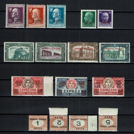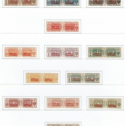 Italiensk Somalia, Pacchi Postali 4 udgivelser, 10 værdier fremragende centrerede, 1925, Sassone P50/53 +66/71, nyt uden gum. Klik på den blå "gå til varen" knap, for at købe eller byde på denne vare. Den samlede pris vil blive vist inden du afgiver dit bud.