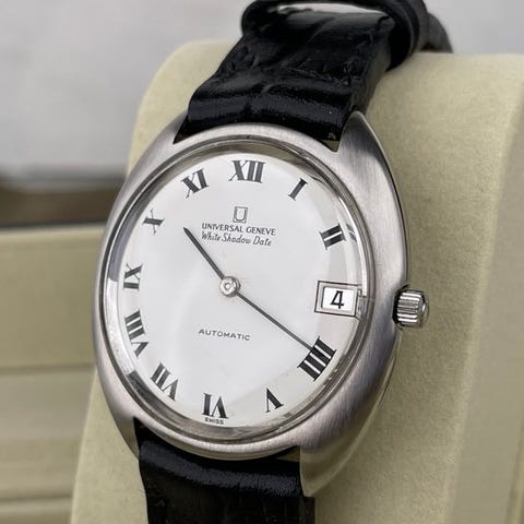 Universal Watch kronograf med manuel wind, sølvkasse, diameter 50 mm, reference 70928, vægt 91 g, i god stand og fungerer, forsendelse forsikret. Klik på den blå "gå til varen" knap, for at købe eller byde på denne vare. Den samlede pris vil blive vist inden du afgiver dit bud.