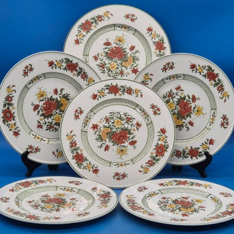RARE Bordservice, Vintage- og moderne sæt, art nouveau og art déco bestående af 8 store tallerkener, dybe tallerkener, skåle. Middagsservise. Morgenmad, dessert, entremet, brunch.