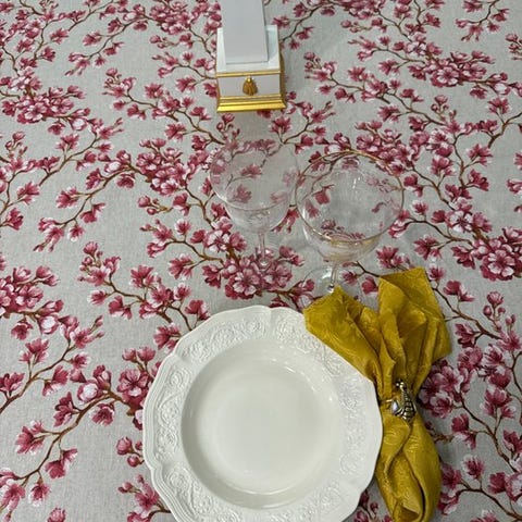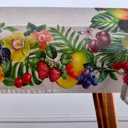 Pop Art-dug til store middagsborde. Akvamarin og kirsebær - Dug - 240 cm - 14...