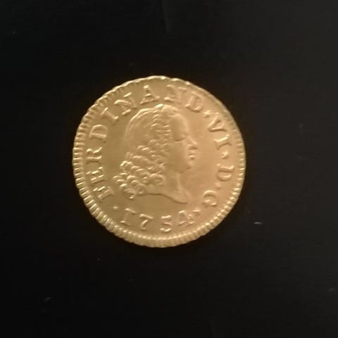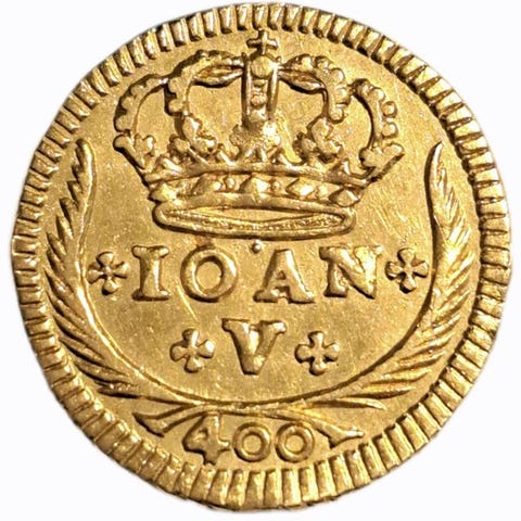 Meio Escudo i guld fra D. João V, 1729, vægt 1,70 g, uden bedømmelse, uden møntmærke. Klik på den blå "gå til varen" knap, for at købe eller byde på denne vare. Den samlede pris vil blive vist inden du afgiver dit bud.