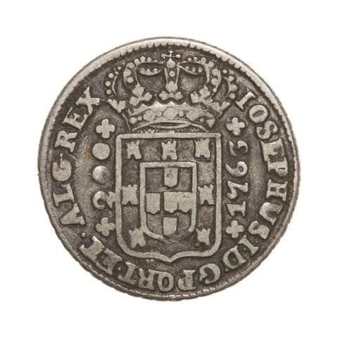 Portugal, 1829, sølvmønt på 12 Vinténs (240 Reis) fra D. Miguel I's regeringstid (1828-1834), vægt 7,36 g, diameter 29,15 mm, stand XF+/aUNC. Klik på den blå "gå til varen" knap, for at købe eller byde på denne vare. Den samlede pris vil blive vist inden du afgiver dit bud.