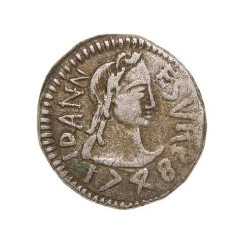 Portugisisk Indien, Goa, sølv Pardau (300 réis) mønt fra 1787 i XF-konstruktion, vægt 5,32 g, diameter 19,75 mm, præget under D. Maria & D. Pedro III (1777–1786). Klik på den blå "gå til varen" knap, for at købe eller byde på denne vare. Den samlede pris vil blive vist inden du afgiver dit bud.