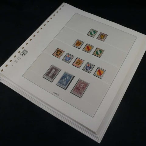 Flot samling af Den Føderale Republik i 5 Lindner fortrykte albums fra 1949-1999, tilsyneladende komplet. Indtil 1959 blandede frimærker, og postfrisk. Herefter kun postfrisk. Meget ren og god kvalitet direkte fra samlerens bo. Vi har vist alt op til 1960, derefter kun få sider. Det første bind er stadig det gamle Lindner-system, bind 2-5 alt i det nye Lindner album-format. Meget dyrt album og binder.