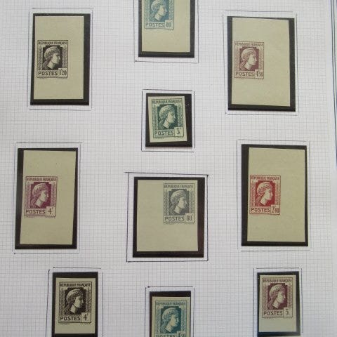 Fuld mint-fersk samling fra Frankrig (1944–1956) i et Luxe Lidner-album, Yvert 599/1090, tilstand: postfrisk. Klik på den blå "gå til varen" knap, for at købe eller byde på denne vare. Den samlede pris vil blive vist inden du afgiver dit bud.