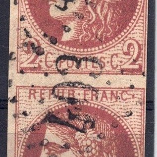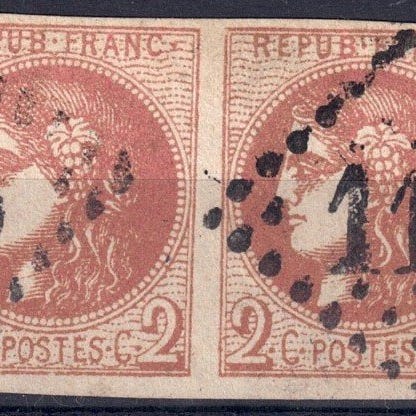 Frankrig 1870 N°48e – Udstedt i Bordeaux – 40c Dybe blodrød uden kuvert, afstempeleret, TB Certificat Roumet og underskriften Miro, katalogiseret som Yvert et Téllier N°48e. Klik på den blå "gå til varen" knap, for at købe eller byde på denne vare. Den samlede pris vil blive vist inden du afgiver dit bud.