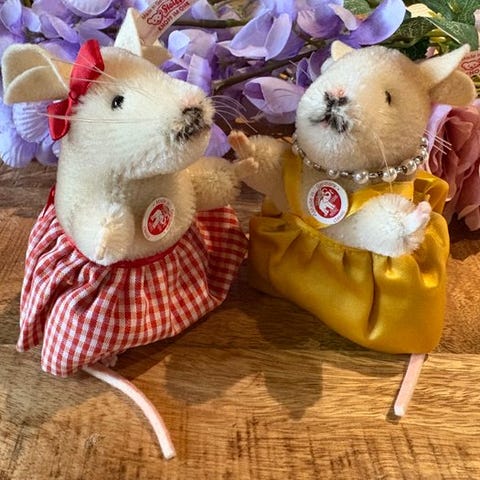 Alle bjørne har deres originale Steiff “Button in Ear”-mærker og brystkort.