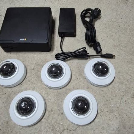 Overvågning system med 4 kamera med motion dektektion og infrarød lys så de kan optage selv i mørke med harddisk optager truvision nrv10cs kan tilsluttes tv monitor og internet via app kan du se det live og afspille gamle optagelser og alle kabler er med til montering af det kan vise i funktion pæn og velholdt