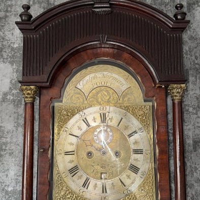 En østrisk bordur fra begyndelsen af det 19. århundrede (1810–1835), lavet af ebenisteret træ med gildede messingbeslag, mekanisk otte dages urværk, stor sonnerie kvart‑repeater på to gonger, oprindelse Wien/Pressburg, ca. 3,5 kg, målene 43,7 × 22,9 × 17,2 cm. Klik på den blå "gå til varen" knap, for at købe eller byde på denne vare. Den samlede pris vil blive vist inden du afgiver dit bud.