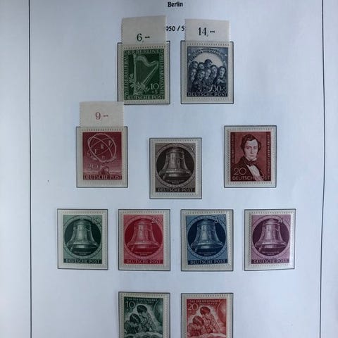 Tyskland, Forbundsrepublikken Tyskland, komplet samling fra 1949 til 2000, i to Leuchtturm-albumper, ny uden hængelapper. Klik på den blå "gå til varen" knap, for at købe eller byde på denne vare. Den samlede pris vil blive vist inden du afgiver dit bud.