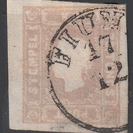 Et enkelt brugt frimærke, sjældent poststempel "PD", med let tyndslidning, underskrevet Giusti.