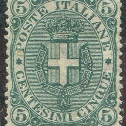 Stemma Sabaudo 5 øre mørkegrøn fra Italia Regno, udgivet 1889, stand: Mint uden linguella, Sassone nr. 44, certificeret Raybaudi og ekspertunderskrift. Klik på den blå "gå til varen" knap, for at købe eller byde på denne vare. Den samlede pris vil blive vist inden du afgiver dit bud.