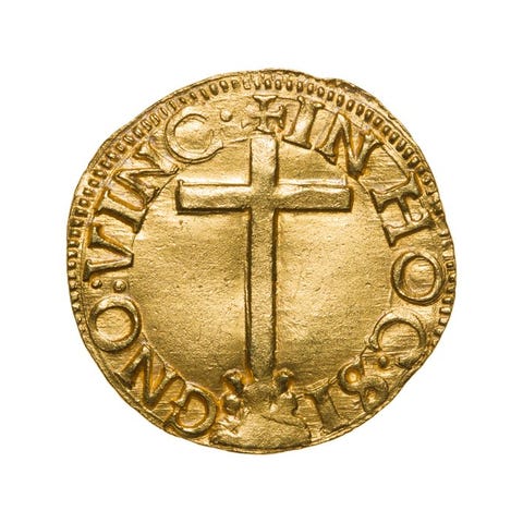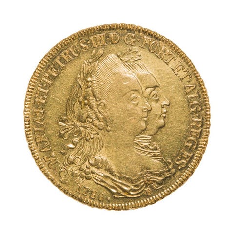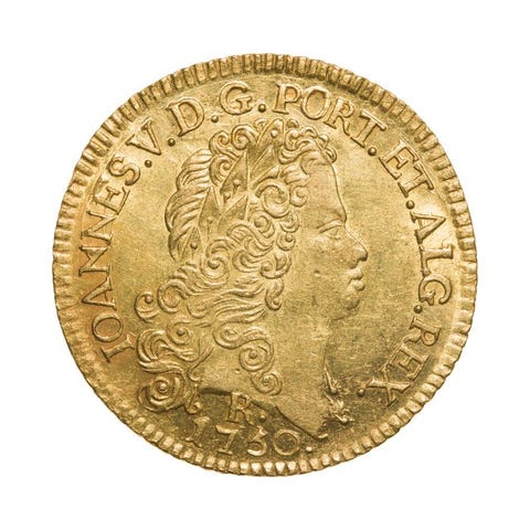 Portugal, monarki under D. João VI (1816-1826), 1822 Lissabon, Cruz Irradiada (8+1 Frugter), guldkøbmønt, vægt 14,36 g, diameter 31,15 mm, stand XF+/aUNC. Klik på den blå "gå til varen" knap, for at købe eller byde på denne vare. Den samlede pris vil blive vist inden du afgiver dit bud.