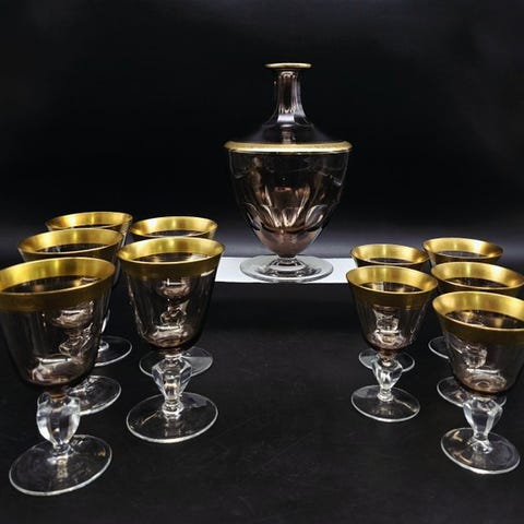 Prestigefyldt Krystalservice "Marlowe Gold" – Theresienthalfabrik (Tyskland, ca. 1950-1960)
