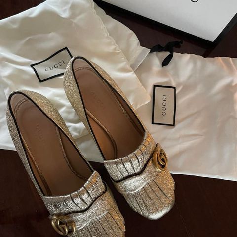 Nye, aldrig brugt, ikke engang prøvet på, med original æske, støvpose købt direkte hos Gucci med faktura