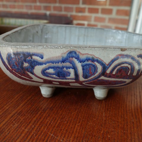 Keramik, Smuk keramik skål, Nis Stougaard, Svaneke. Måler ca. 8,5 cm. i højden, og ca. 20 cm. i dia. Ingen skår eller afslag. Smuk, dekorativ og skønt glasur- og keramikarbejde. I meget pæn stand i betragtning af alder.