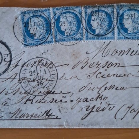 Et sjældent diplomatisk registreret kuvert fra 1932 sendt til en højere embedsmand i Tysklands Udenrigsministerium via Sibirien fra Shanghai (China Merchants Group-bygningen på bagsiden), multiple franking af 5 cent, 10 cent og 50 cent China Junk Ship-stempler, aflyst i Shanghai med bagstempel Berlin dato 6-4-1932, påsat registreret mærke med registreret forsendelseslabel fra Shanghai, efter “January 28 incident” (一二八事變) som fandt sted i Shanghai mellem Japan og