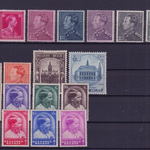 Belgien 1929 - Hele serien Kong Albert I MNH med sjældne arkkanter. - Michel ...