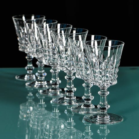 Mooi lot van 6 kristallen Val Saint Lambert glazen, model 'Berry'. België, be...